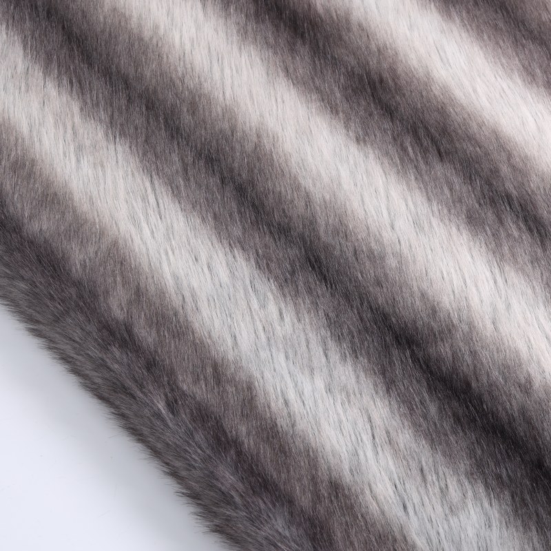 Tired of monotonous solid-color faux fur yet worried about intricate patterns being hard to style and not durable? The “Black and White Striped Toka Faux Fur Fabric” tackles the pain points of design monotony and visual fatigue with its strikingly modern geometric stripes. We blend classic black-and-white contrast aesthetics with exceptional practicality to offer a solution that instantly elevates visual depth without the hassle of maintenance.