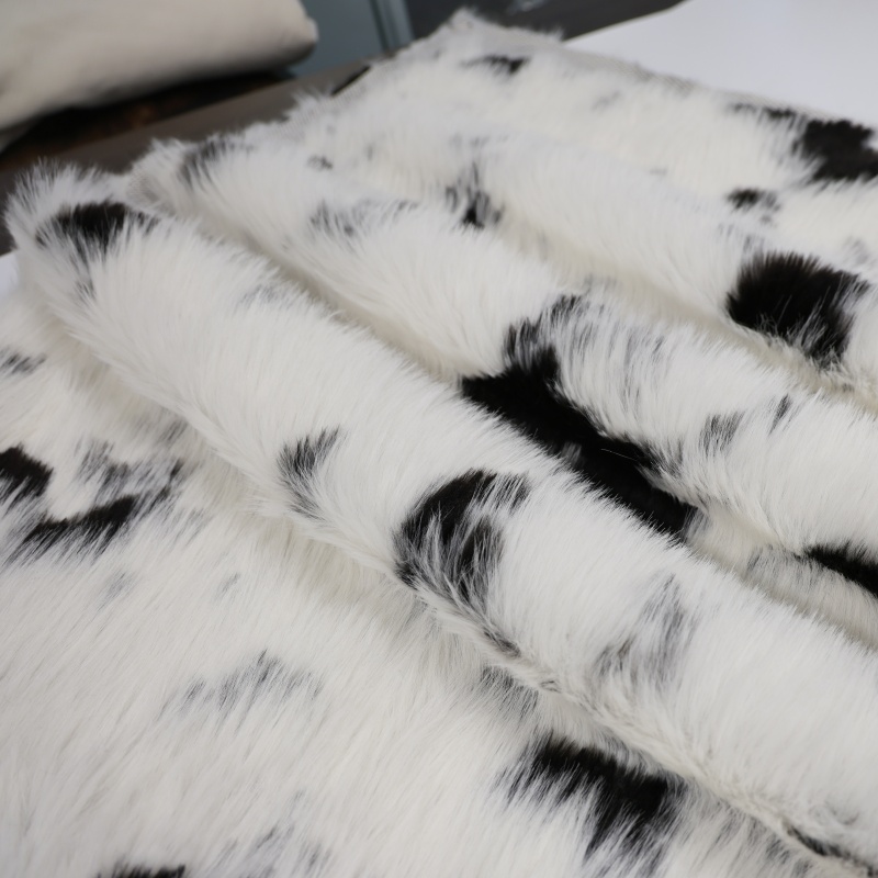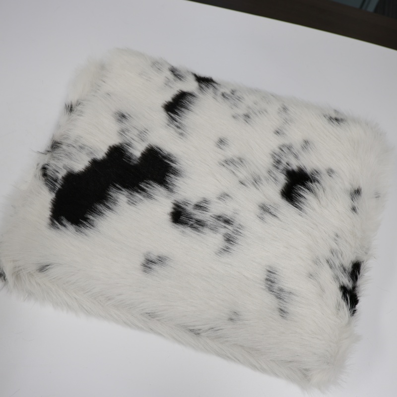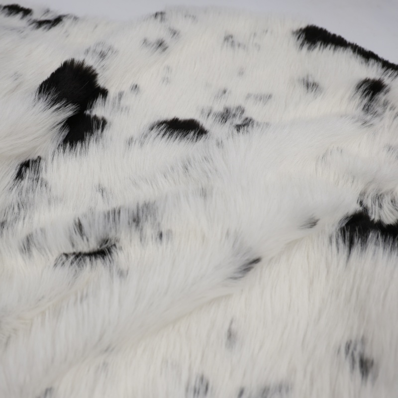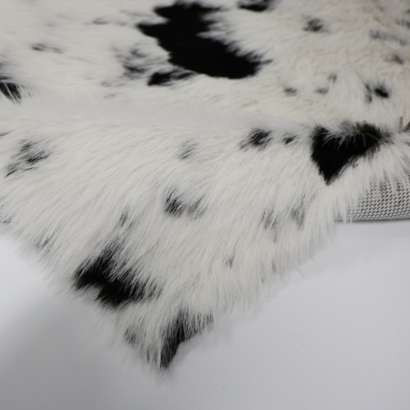 As a professional faux fur manufacturer, our black-and-white jacquard cowhide fabric is crafted from 1100G high-density 100% polyester. Through exquisite jacquard weaving techniques, it perfectly captures the classic cowhide pattern with a three-dimensional texture. Our products hold OEKO-TEX STANDARD 100. ISO9001. and ISO14001 certifications, meeting EU standards to ensure eco-friendly safety while showcasing distinctive fashion patterns. The bold black-and-white contrast paired with three-dimensional jacquard textures creates a striking visual impact, with customizable pattern size and density available.