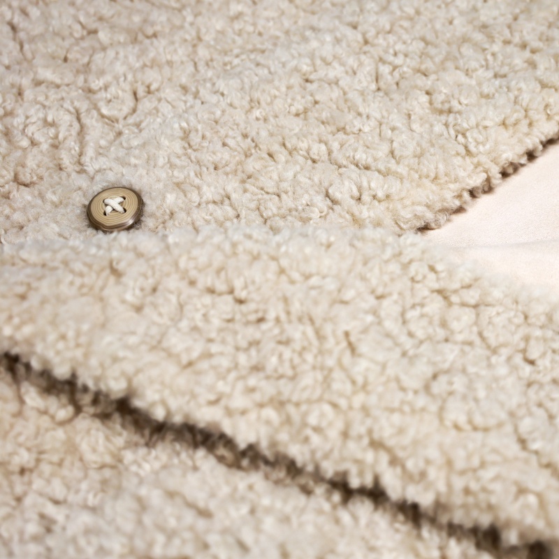This long curly faux lambskin coat is expertly crafted by a professional faux fur manufacturer. Made from 100% polyester, it perfectly replicates the classic curly texture and fluffy feel of natural lambskin. Certified under OEKO-TEX STANDARD 100. ISO9001. and ISO14001. our product complies with EU regulations. It delivers a luxurious appearance and soft touch while ensuring environmental safety and international compliance. The long silhouette combines structured tailoring for warmth and elegant appeal. Custom color options are available to meet diverse market demands.