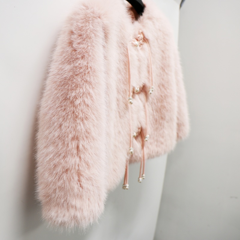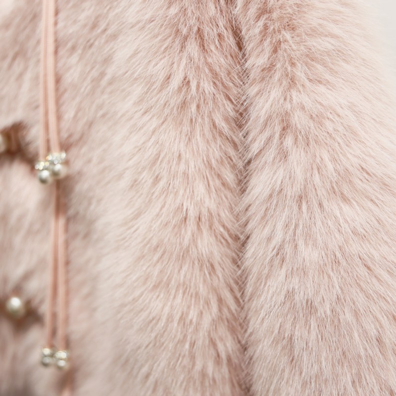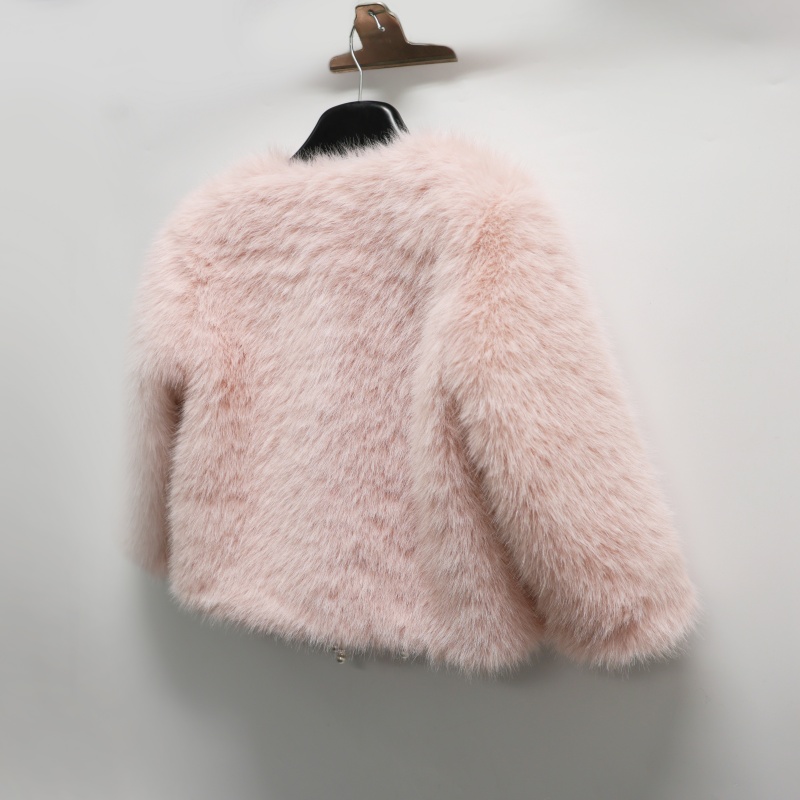 This faux fox fur short coat is expertly crafted by a professional faux fur manufacturer using 100% polyester, perfectly replicating the luxurious texture and flowing elegance of natural fox fur. Our products hold OEKO-TEX STANDARD 100. ISO9001. and ISO14001 certifications, meeting EU standards to guarantee exceptional softness against the skin while ensuring environmental safety. The structured silhouette and cropped design flatter the figure while preserving the luxurious essence of a fur coat. Custom color options are available to meet diverse market fashion demands.