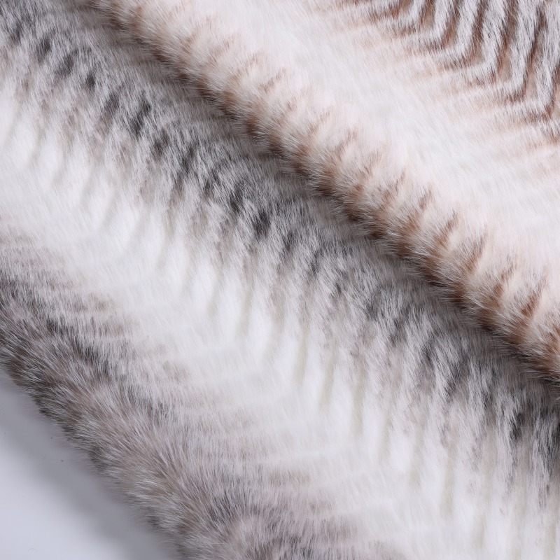This mid-length beige coat with brown W-pattern print is crafted from 100% polyester. Its distinctive W-shaped geometric texture is achieved through sophisticated printing techniques, creating an elegant contrast between the beige base and brown patterns. Our products are certified under OEKO-TEX STANDARD 100, ISO9001, and ISO14001, meeting EU standards. They deliver a fashionable appearance and comfortable feel while ensuring environmental safety and international compliance. As a premium mink-style fur jacket, it combines the practical warmth of a winter coat with the fashion appeal of clothing fur. Customization options for color and size are available, with a minimum order quantity of 300 pieces.