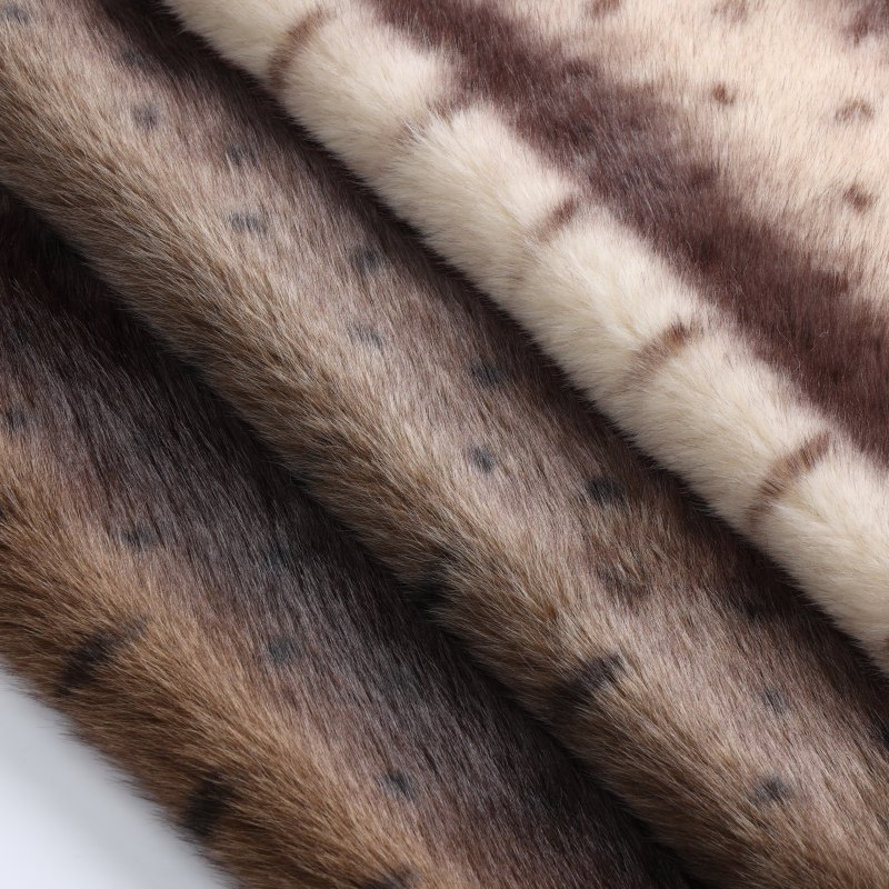 This faux mink fabric represents our mastery as a specialized synthetic fur manufacturer, deeply integrating modern printing technology with biomimetic fur structures. Built on a substantial 1150g weight, its unique cationic dye printing process renders crisp, vibrant, and layered gray-green gradient patterns across the delicate mink-like texture. From R&D to production, we adhere to the highest standards. This collection is certified under OEKO-TEX STANDARD 100. ISO9001. and ISO14001. ensuring the entire manufacturing process complies with international safety and environmental management systems. It fully meets EU market regulations, allowing bold creativity to withstand rigorous quality scrutiny.