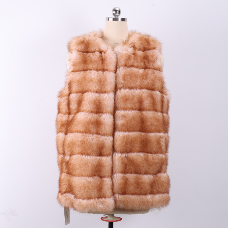 Tired of bulky winter coats that restrict movement, yet reluctant to sacrifice warmth and style? We offer a smarter solution for staying warm. This sleeveless off-white dyed faux mink vest is designed to solve the dilemma of layering and lightness in winter outfits. It eliminates the bulky sleeves of traditional faux fur coats while retaining warmth and luxurious texture for the core torso. Its unique tip-dyeing technique and safe materials—certified by OEKO-TEX STANDARD 100. ISO9001. and ISO14001 to meet EU standards—allow flexible layering for any indoor or outdoor setting, effortlessly creating sharp, sophisticated winter looks.